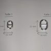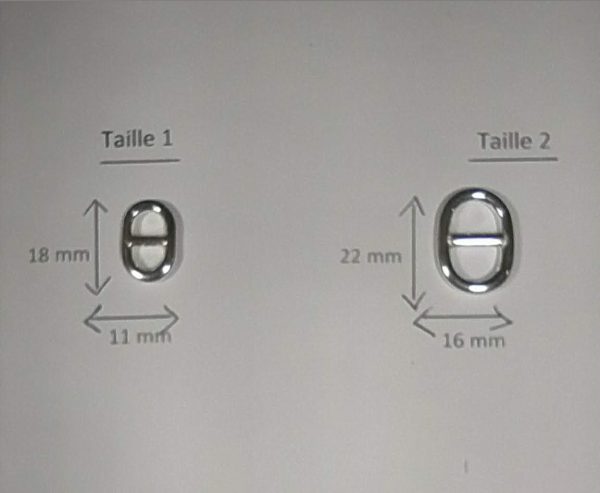 La bague se compose d’un anneau de métal plaqué argent de 12 mm de large et d’une pampille en forme de maille marine de 22 mm ou de 18 mm de longueur.