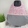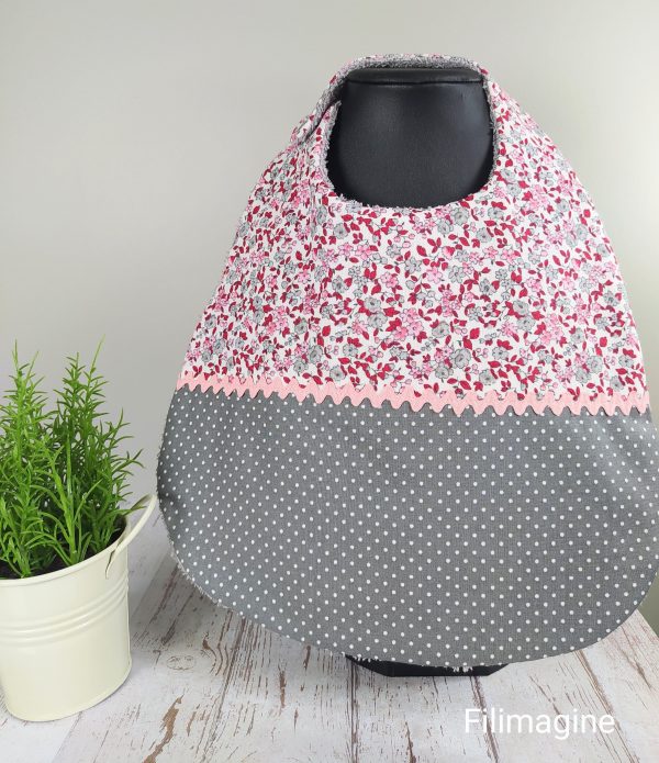 Bavoir croquet rose et pois gris taillé dans 2 tissus en coton aux  jolies imprimés choisies par mes soins en parfaite harmonie : l’un style liberty rose et gris, l’autre gris à pois blanc.