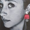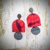 Boucles Berlin en papier glacé rouge et rayures de 6 cm de hauteur avec puce en acier inoxydable argenté.