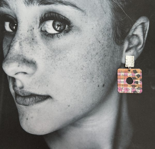 Boucles Clips Philadelphie en papier recyclé orange et fuchsia peint à la main.