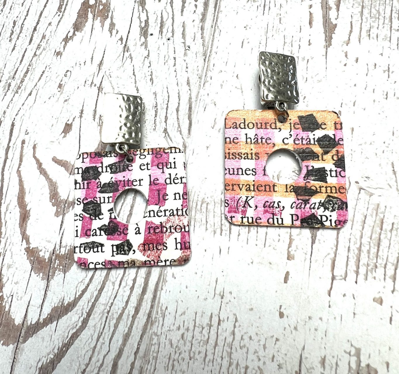 Boucles Clips Philadelphie en papier recyclé orange et fuchsia peint à la main.