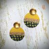 Boucles Denver en papier glacé damier noir et doré de 3,5 cm de diamètre et de 4 cm de hauteur avec puce en acier inoxydable doré.