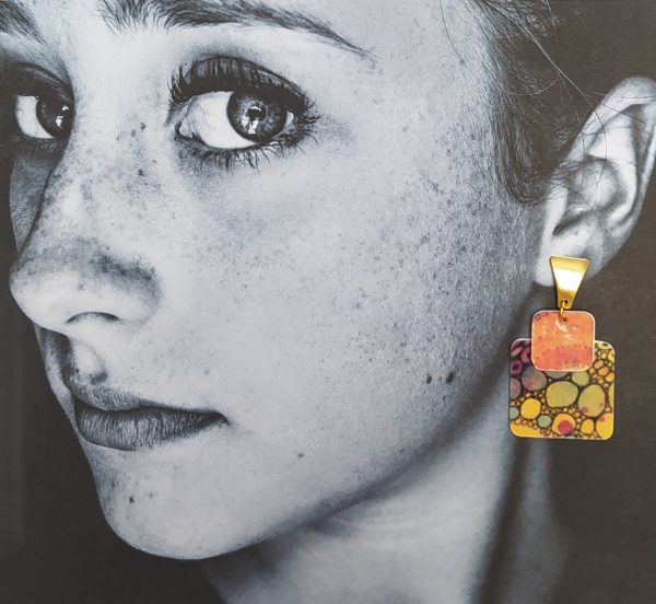 Boucles d’oreilles en papier glacé de 5,5 cm de hauteur totale. Très légères elles sont d’un confort inégalé. Les couleurs sont lumineuses et éclaireront toutes vos tenues.  Formes découpées avec précision par mes soins, mais les motifs peuvent être légèrement différents selon le placement de ma découpe. Cette particularité leur donne toute leur originalité.