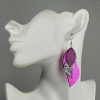 Boucles longues cuir métallisé rose argent et violet de 8 cm de hauteur avec crochet en acier inoxydable.