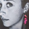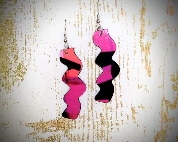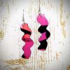 Boucles Palerme en papier glacé fuchsia et noir de 7,5 cm de hauteur avec crochet argenté en acier inoxydable.