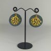 Boucles d’oreilles rondes en liège de 35 mm de diamètre et de 40 mm de hauteur sublimées par un motif « corail » doré. Les crochets sont en plaqué or Gold-filled.