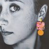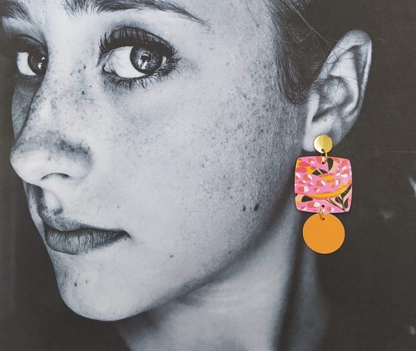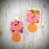 Boucles Tokyo en papier glacé abricot et rose de 6 cm de hauteur avec puce en acier inoxydable doré.