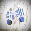Boucles Tokyo en papier glacé bleu et blanc de 6 cm de hauteur avec puce en acier inoxydable.