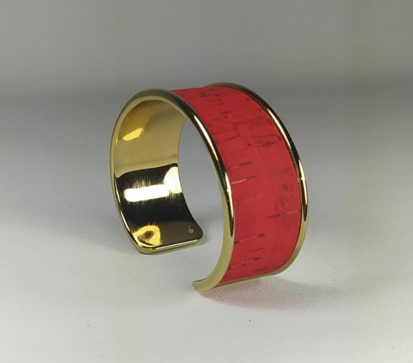 Bracelet 24 mm doré et liège rouge.