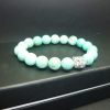 Bracelet homme perles turquoise tête tigre, monté sur un élastique spécial pour bracelet, très solide. Le passant en forme de tête de tigre est en métal argenté de qualité supérieure. Les perles font 10 mm de diamètre.
