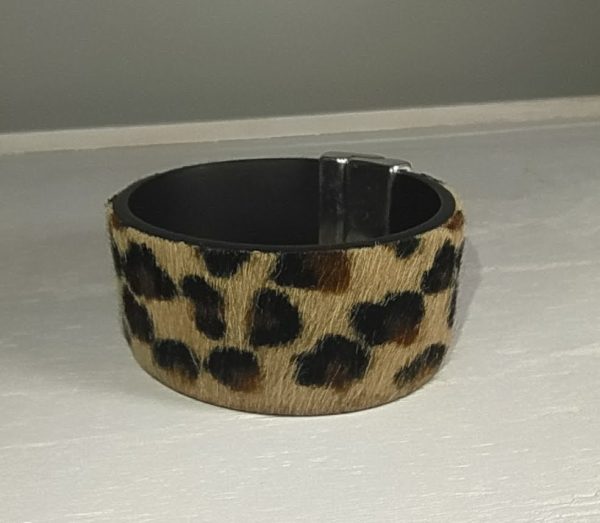 Le cuir est recouvert de fausse fourrure léopard et donne à ce bracelet son côté très tendance.