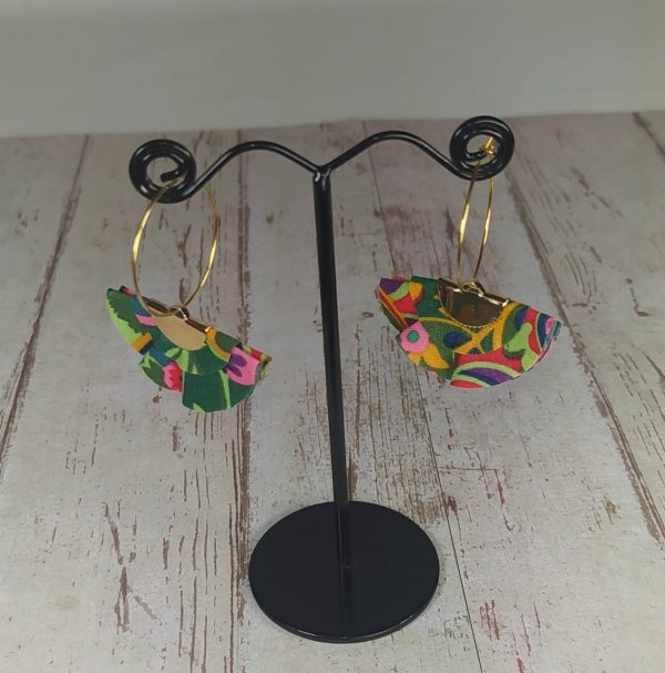 Créole dorée tissu cachemire vert de 25 mm de diamètre en acier inoxydable.