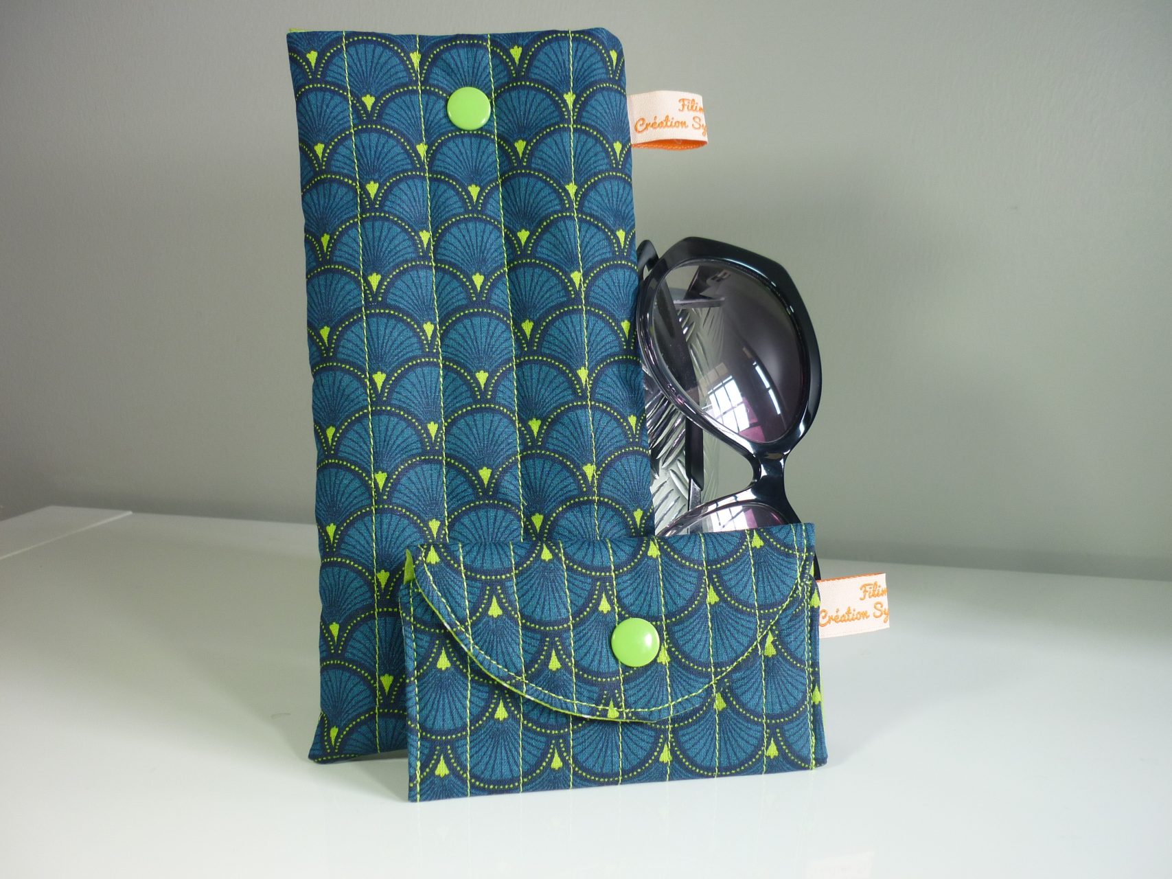 Etui à lunette et porte-cartes art-déco en coton matelassé seront les accessoires parfaits pour cet été. Hyper légers, ils n’alourdiront pas le contenu de votre sac. Les imprimés de cet ensemble sont coordonnés, l’extérieur comme la doublure. Le matelassé a été fait par mes soins dans un souci de qualité.