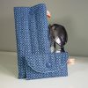 Etui à lunette et porte-cartes en coton matelassé dans deux tons de bleu, foncé et clair.