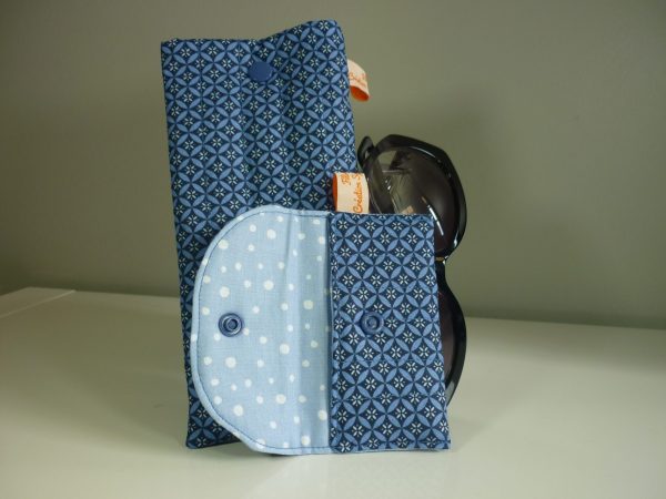 Etui à lunette et porte-cartes bleu duo en coton matelassé seront les accessoires parfaits pour cet été. Hyper légers, ils n’alourdiront pas le contenu de votre sac. Les imprimés de cet ensemble sont coordonnés, l’extérieur comme la doublure. Le matelassé a été fait par mes soins dans un souci de qualité.