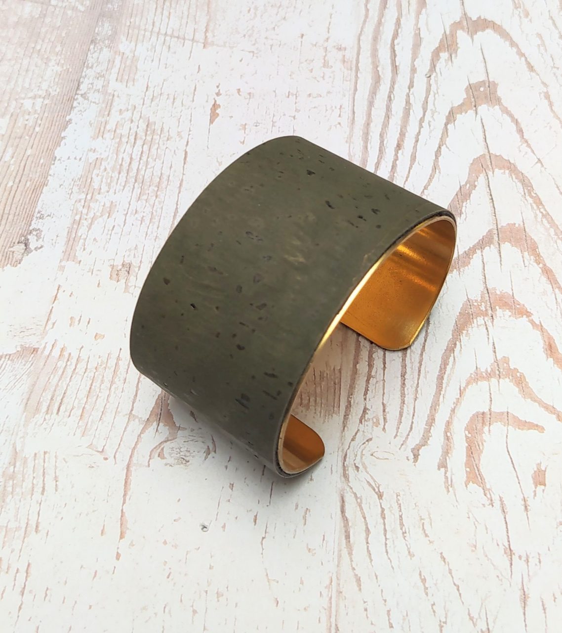 Bracelet manchette liège kaki.