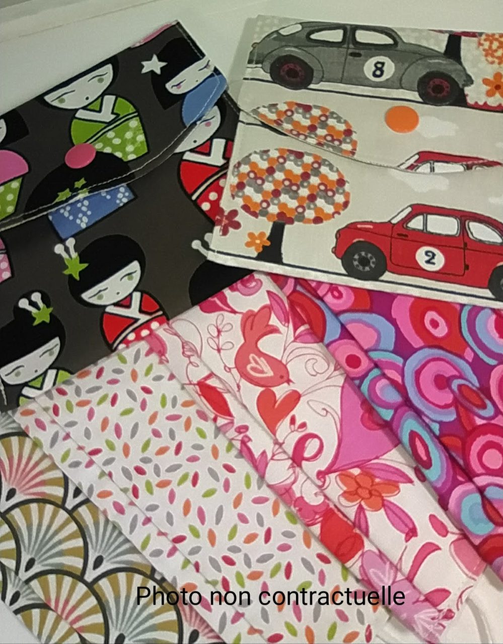 Masque barrière enfant lot de 4 avec pochette offerte. Masque alternatif à pli creux en tissu 100% coton, lavable à 60°, modèle AFNOR. Différents imprimés au choix, veuillez noter dans votre commande le numéro indiqué sur la photo . Pour cet achat, une pochette vous est offerte à choisir parmi les 2 modèles exclusifs proposés : Pochette « Voitures » ou Pochette « Poupées Japonaises ». Noter votre choix au moment de la commande.