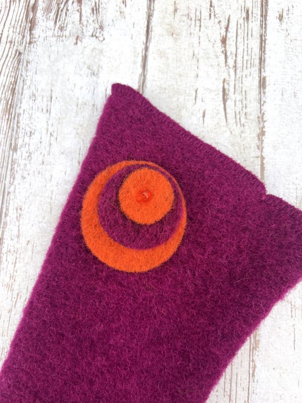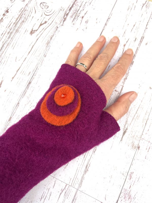 Mitaines laine violette trio de cercles en laine bouillie pour réchauffer vos mains. Vous pourrez vous servir de vos mains sans avoir à quitter vos gants.