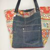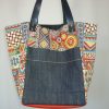 Sac cabas jean recyclé et tapisserie en tissu d’ameublement haut de gamme multicolore.