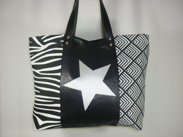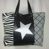 Sac cabas zèbre et étoile argent confectionné dans un ensemble de tissus d’ameublement « haut de gamme ».
