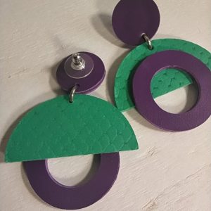 Boucles géométriques cuir émeraude et violet