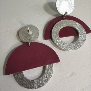 Boucles géométriques cuir framboise et argent
