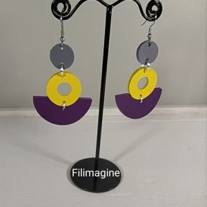 Boucles géométriques cuir gris jaune violet