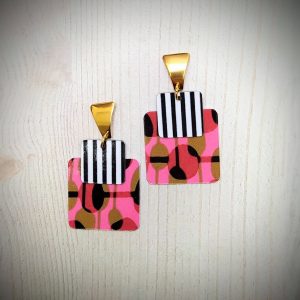 Boucles Bilbao triangulaires en cuir rose peint à la main